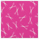 Tejido rosa caliente con un moderno patrón de tijeras en blanco. Perfecto para peluqueros, peluqueros y similares.