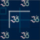 Patrón de símbolo omnipresente en colores pastel sobre un fondo azul oscuro.