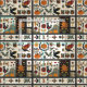 Esta tela muestra un estilo de tejido de arte folclórico con motivos de otoño y naturaleza dispuestos en bloques rústicos de cuadros. En todas partes aparecen calabazas, hojas de roble, ramas florales y pájaros (incluido un ave de cuervo y faisán), junto con estrellas, diamantes y acentos cardíacos. Creado al estilo de aplicar y bordar, el patrón utiliza tonos cálidos de tierra de naranja, marrón, rojo, verde y crema, que evocan el espíritu de la caída. Perfecto para la decoración de una casa de campo, el estilo primitivo de la Americana, las artesanías de temporada de cosecha y los entusiastas del arte folclórico rústico.