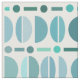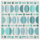 Un estilo vintage de mediados de siglo moderno con formas geométricas de tazones, puntos y líneas. Tonos azul-verde y blanco.