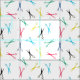 Tela blanca con un diseño moderno de tijeras en colores fuertes. Perfecto para peluqueros, peluqueros y similares.