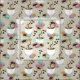 taza de café al vapor con espuma central en forma de corazón, macarons, galletas de huella digital y galletas de mermelada. ilustraciones originales y diseño de patrones de superficie por Holiday Hearts Designs (todos los derechos reservados).