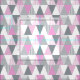 Tejidos con motivos de triángulos geométricos rosa y gris bonito. Filas de triángulos en rosa, gris y blanco. Ideal para combinar con una habitación gris pastel, rosa o blanca.