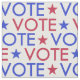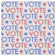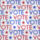 Tejido de votación con VOTE escrito en letras limpias en rojo y azul contra fondo blanco.