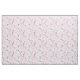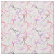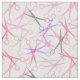 Tela estilista blanca con un patrón de tijera dispersada en rosa, violeta, violeta y gris.