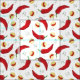 Si te gusta el chile rojo, este es tu aspecto. Un elegante patrón de grandes pimientos de chile rojo mezclados con versiones más pequeñas en círculos amarillos. Muchos puntos verdes y rojos llenan espacios abiertos con un fondo blanco. También viene en un patrón de chile verde. productos a juego disponibles.