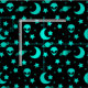 Este vibrante patrón alienígena y espacial presenta brillantes elementos turquesa contra un fondo negro profundo, creando una audaz y estética de otro mundo. El diseño impecable incluye cabezas extraterrestres clásicas, lunas de media luna, estrellas, planetas tipo Saturno y starburst radiantes, todo ello organizado en un diseño cósmico lúdico. Los acentos verde azulados brillantes se despliegan dramáticamente en el oscuro escenario, dándole al patrón un toque futurista e inspirado en la ciencia ficción. Perfecto para los aficionados a la tradición de los OVNI, a los temas del espacio exterior y a los motivos celestes, este diseño repetitivo capta el misterio y la maravilla del universo en un estilo llamativo y moderno.