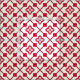 Elegante patrón continuo que presenta motivos florales rojos enmarcados por rejillas geométricas audaces, presentados sobre un fondo blanco. Perfecto para proyectos de textiles, decoración del hogar o diseño gráfico que requieren un toque sofisticado.