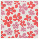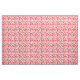 Obtén las vibraciones retro con esta tela funky impresa con un patrón abstracto de adornos rojos y rosados sobre blanco