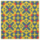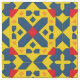 Un diseño geométrico abstracto vívido con tonos amarillos, azules y rojos que forman un patrón simétrico. Perfecto para ambientes artísticos, proyectos decorativos e inspiración de diseño gráfico.