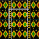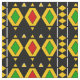 Impresionante tela de diseño geométrico africana con motivos de diamantes rojos, amarillos y verdes sobre negro