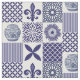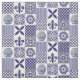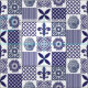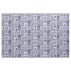 Tejidos de mosaicos elegantes de color blanco y azul Shabby, adornados con jarrones de jengibre, girasoles, flores de alilo y azulejos de enrejado marroquí.