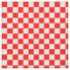 Esta tela presenta un popular patrón croata de tablero de ajedrez en rojo y blanco.