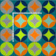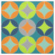 Muy elegante y en diseño de tendencia con un gran patrón de mosaico repetido de círculo; inspirado en los gráficos retro de mediados de siglo. Fabulosa mezcla de colores en gris, azul verde azulado, verde cal, naranja.