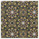 Elegante diseño de tela femenina con un patrón impecable de formas geométricas en finos tonos dorados sobre fondo negro.
