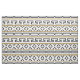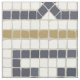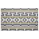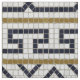 Elegante diseño geométrico de mosaico de piedra de motivos romanos, tonos blancos negros y dorados.
