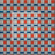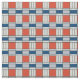 Esta tela colorida presenta un patrón geométrico retro en rojo, azul, gris claro y negro.