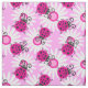 Insectos de insectos de mariposa rosada que se arrastran por la margarita como flores chicas tela de arte. Una tela de patrón de repetición caprichosa en tonos rosa, negro y blanco sobre un fondo rosa medio que puede cambiarse a su elección de color si es necesario. Arte y diseño de Sarah Trett.