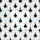 Un patrón de siluetas de caza negro F-15C Eagle se despliega sobre un fondo de blanco y hacen de esta tela perfecta para proyectos de vivero modernos o eventos de escuadrón.
