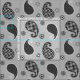 Patrón paisley ornate en blanco y negro clásico sobre fondo gris claro plateado / gris