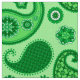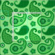 Tejidos decorativos en tonos paisajísticos, de color verde esmeralda y de luz a verde jade, sobre un fondo verde de jade claro