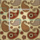 Patrón de paisajes ornados en tonos marrones, rojos y beige cálidos, acentuados con marrón chocolate, sobre un fondo de color caramelo marrón
