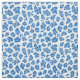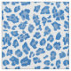 Tejido de impresión de leopardo azul y blanco en un patrón repetido.