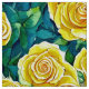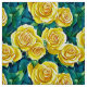 Tela en un patrón acuarela de rosas anticuadas y amarillas contra un verde frondoso fondo