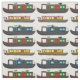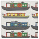 Los dueños de los barcos y los amantes de los barcos estrechos adorarán esta tela con coloridos barcos estrechos tradicionales de los canales y barcazas en blanco. La tela perfecta para crear el interior de tu barco