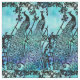 Pavos reales vintage de grabado en madera retozan en un fondo de acuarela azul verdoso