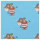 Payaso occidental del rodeo en un barril con un toro detrás de él diseño en tela.