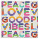 Un patrón de texto único y colorido decorativo Paz Amor Buenos Vibes. Hermosa pieza de tela para cualquiera. Si es necesario, utilice la opción "Personalizar" para colocar la imagen en un producto o para cambiar el color del fondo. Disfruta, compra una, diviértete y sé feliz. #peace #love #GoodVibes #color #texto #tipografía #tejido #artesanía