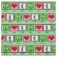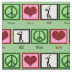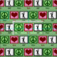 Tela verde con signos de paz, corazones y golfistas. Un gran regalo para hacer objetos de golf.