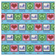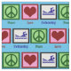 Señales de paz, corazones y gente nadando en una tela azul de piscina de bonito. Me encanta nadar y hacer cosas lindas con telas de bonito.