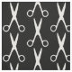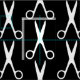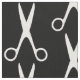 Tijeras de estilismo de pelo blanco sobre un fondo sólido.