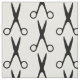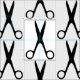 Tijeras de estilismo de pelo negro sobre un fondo blanco claro.