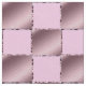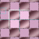 Esta bonita tela perfecta para una niñera o una niña pequeña tiene cuadrados rosa pastel y violeta que forman un tejido de tejido. Los cuadrados están delineados con una cinta seda rosa y púrpura.