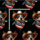 Un Heeler Azul retratado como un vaquero con un gorra de cuero emparejado elegantemente con una bandana de la bandera estadounidense, encarnando el orgullo americano y el encanto temático.