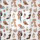 Ilustracion lindo de chicas y perros de diferentes razas en un entorno beige