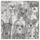 Originalmente dibujado en tinta, perros ilustrados que incluyen espátulas, dálmatas, boxeadores y razas mixtas ~ negro, blanco, monocromo ~ Archivo básico de patrones repetitivos para tela, se sienten libres de ajustar la escala según sea necesario.