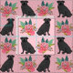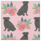 Tela Perros de Pug Negro color rosa floral