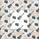 Tela de personalizable con ilustraciones vintage de guitarra y radio + diseño "espagueti" rosa pálido. No te olvides de toda la colección de telas de estilo años 50 revisitadas.