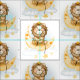 Tela con un bonito ilustracion acuático. Un adorable león con una corona pescando estrellas sentadas en una luna creciente descansando en una nube esponjosa. Ilustracion mágico de fantasía.