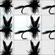 Silueta negra de una mosca seca de pesca con mosca a personalizar con su propio saludo, nombre, mensaje, etc