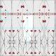 Los pétalos rojos son un diseño floral estilizado presentado en un patrón reflejado.
