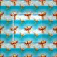 El precioso patrón de fantasía presenta un Firebird of Myth y Magic subiendo al cielo con chispas de miembro. El ave Phoenix nace de las cenizas de su pira. Nacido en llamas, un símbolo de esperanza y nuevos inicios.naranja vibrante, y oro con un toque de azul índigo sobre las puntas de las alas sobre un cielo azul acuático y nubes blancas
