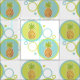 Esta piña digitalmente dibujada pasa de la fruta sabrosa a la glamurosa con un magnífico efecto purpurina. Este fino lustre de frutas tropicales brillantes de oro con hojas en un purpurina verde brillante. Cada piña está enmarcada por círculos de color verde, blanco y un hermoso azul tiffany claro. Este patrón es retro y recuerda a los años 60. Esta moderna impresión de verano le permitirá disfrutar de las playas de Hawái y de las puestas de sol en los complejos turísticos.
