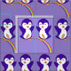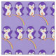 Pingüinos adorables en el amor bailando sobre un lindo arco iris sobre tela púrpura de bonito.