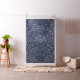 Mandala floral plateada sobre fondo azul oscuro, estilo Art-Decó