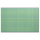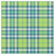 Tela con una platija original de Plaidwerx en verde claro, turquesa, azul y blanco. El patrón se repite cada 2". Pedido especial de mayor escala vía https://plaidwerx.com/contact.htm